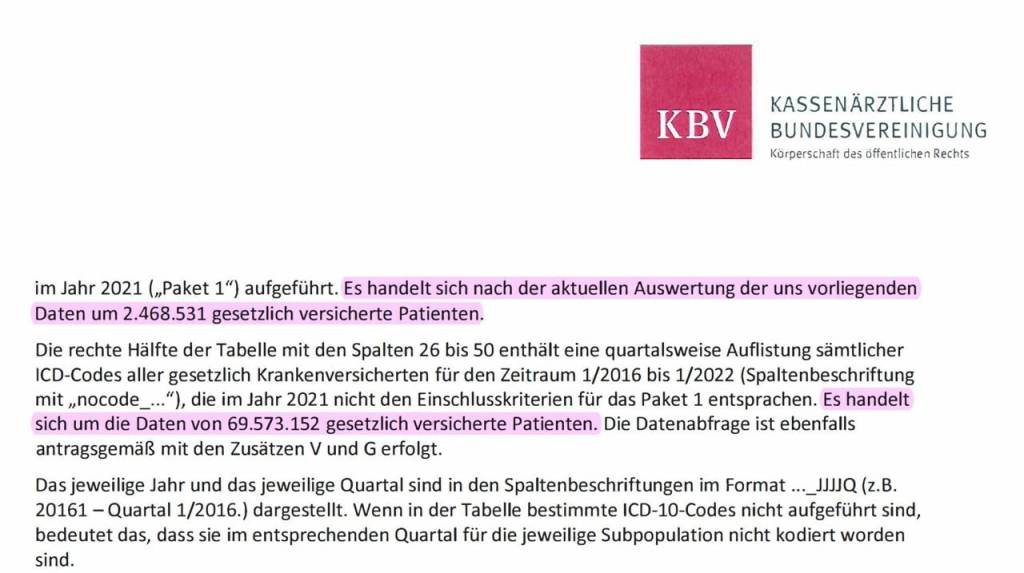 Die obige Antwort schrieb die KBV bei der ersten Anfrage, die schliesslich durch eine 2. Anfrage mit nur dem Wort „Häufigkeit“ ergänzt wurde.
